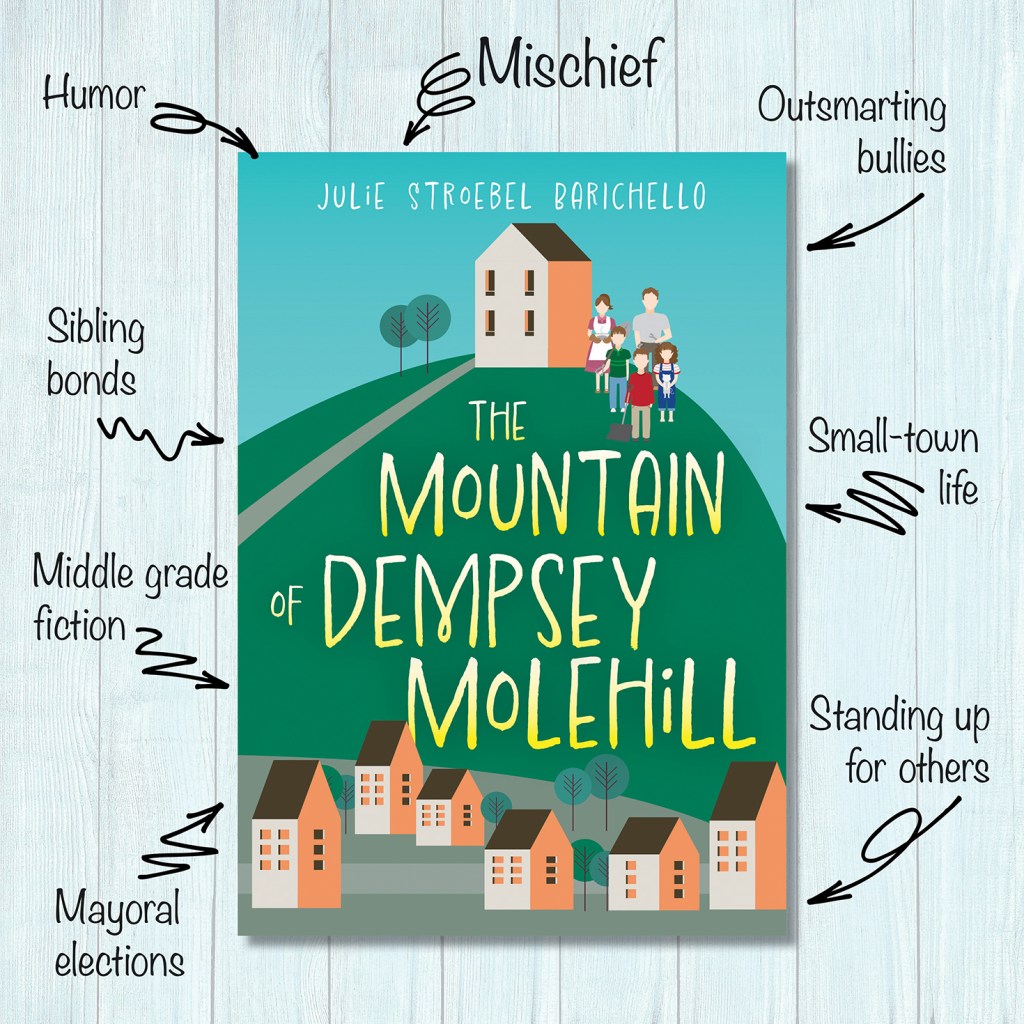 About the Book: Dempsey Molehill and his siblings — practically-a-grownup Brom, responsible Tilly, pesky little brother Penn, and wild child Bandi — don’t mean to cause mischief. But somehow, they always find themselves smack dab in the middle of it. When Dempsey’s dad decides to run for mayor of Pickettstown, the five Molehill kids try to be on their best behavior. Unfortunately for Dempsey and his siblings, their “best behavior” includes luring bullies in muddy mayhem, casting Halloween curses, exploding appliances, and terrorizing classmates with Scrap the one-eared cat. Will their antics cost their dad the election? Or can the family band together to put the best Molehill foot forward? The Mountain of Dempsey Molehill is a humorous middle grade novel about life in rural Illinois, small-town politics, and growing up in a big, rowdy family.